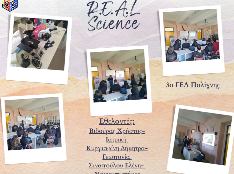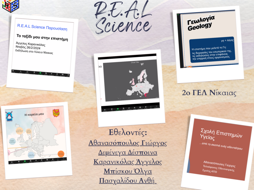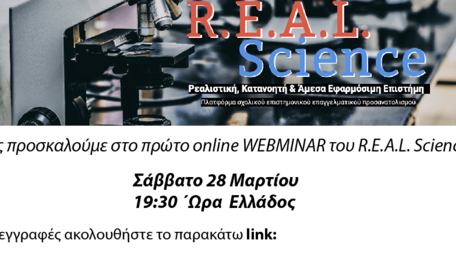 To R.E.A.L. Science είναι η πρώτη πλατφόρμα επαγγελματικού προσανατολισμού που συνδέει Έλληνες Επιστήμονες και Επαγγελματίες από όλο τον κόσμο με μαθητές της πρωτοβάθμιας και δευτεροβάθμιας εκπαίδευσης. Πρόκειται για μια εθελοντική πρωτοβουλία που αναπτύχθηκε για να φέρει τις επιστήμες και τα επαγγέλματα μέσα στην τάξη. Να κάνει τον επαγγελματικό προσανατολισμό μια πραγματικότητα για τους μαθητές και να τον φέρει στη ζωή μέσα από τις εμπειρίες των εθελοντών μας.