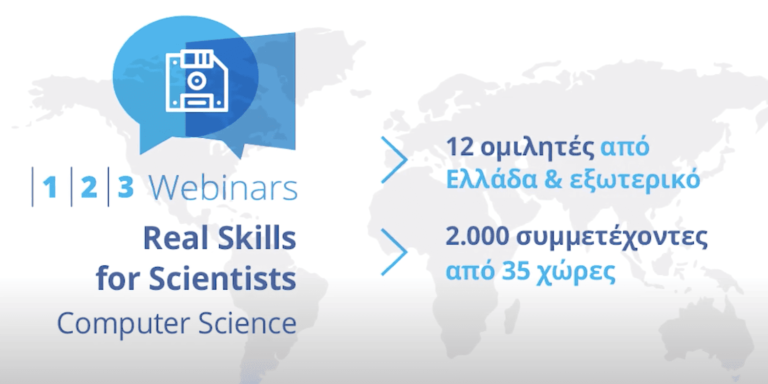 2ος Kύκλος διαδικτυακών σεμιναρίων “Real Skills for Scientists” για νέους επιστήμονες σε συνεργασία με το Εθνικό Κέντρο Τεκμηρίωσης! Σε συνέχεια της επιτυχημένης μας δράσης «Real Skills for Scientists» ολοκληρώσαμε τον 2ο κύκλο webinars «Real Skills for Scientists-Computer Science». Σε συνέχεια της επιτυχημένης μας δράσης «Real Skills for Scientists» ολοκληρώσαμε τον 2ο κύκλο webinars «Real Skills for Scientists-Computer Science» με τη συμμετοχή δώδεκα καταξιωμένων ομιλητών από την Ελλάδα και τον κόσμο και σχεδόν 2.000 άτομα να παρακολουθούν από 22 χώρες!