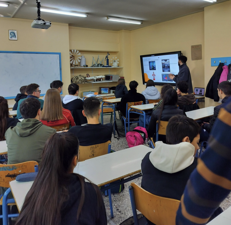 On February 11, 2025, R.E.A.L. Science delivered an informational session at the 3rd Junior High School of Evosmos. Five volunteers participated—three in person and two remotely. Presentations were given to 42 students from two 9th‑grade classes.