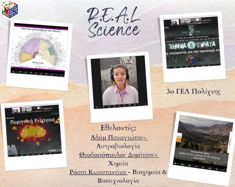 Τέλος, ο μήνας έκλεισε με το σχολείο που μας εμπιστεύεται για δεύτερη συνεχόμενη χρονιά, με το 3ο Γελ Πολίχνης, όπου αυτή τη φορά είχαμε την δυνατότητα να βρισκόμαστε μαζί τους μέσω του διαδικτύου, καθώς πραγματοποιήσαμε μια δράση εξ αποστάσεως. Οι εθελοντές που συμμετείχαν ήταν η Κωνσταντίνα Ρόσσι, ο Παναγιώτης Αδάμ και ο Θεοδοσόπουλος Δημήτριος. Η δράση πήγε πολύ καλά, καθώς τα παιδιά ήρθαν σε επαφή με νέες ειδικότητες που ήθελαν και διάλεξαν οι ίδιοι. Θα θέλαμε να τους ευχαριστήσουμε θερμά, καθώς επίσης και την αγαπημένη μας εκπαιδευτικό κυρία Μαλλιαρίδου Στέλλα για την πρόκληση της και την άψογη συνεργασία που είχαμε μαζί της. Τους υποσχεθήκαμε ότι θα τα πούμε και από κοντά.
